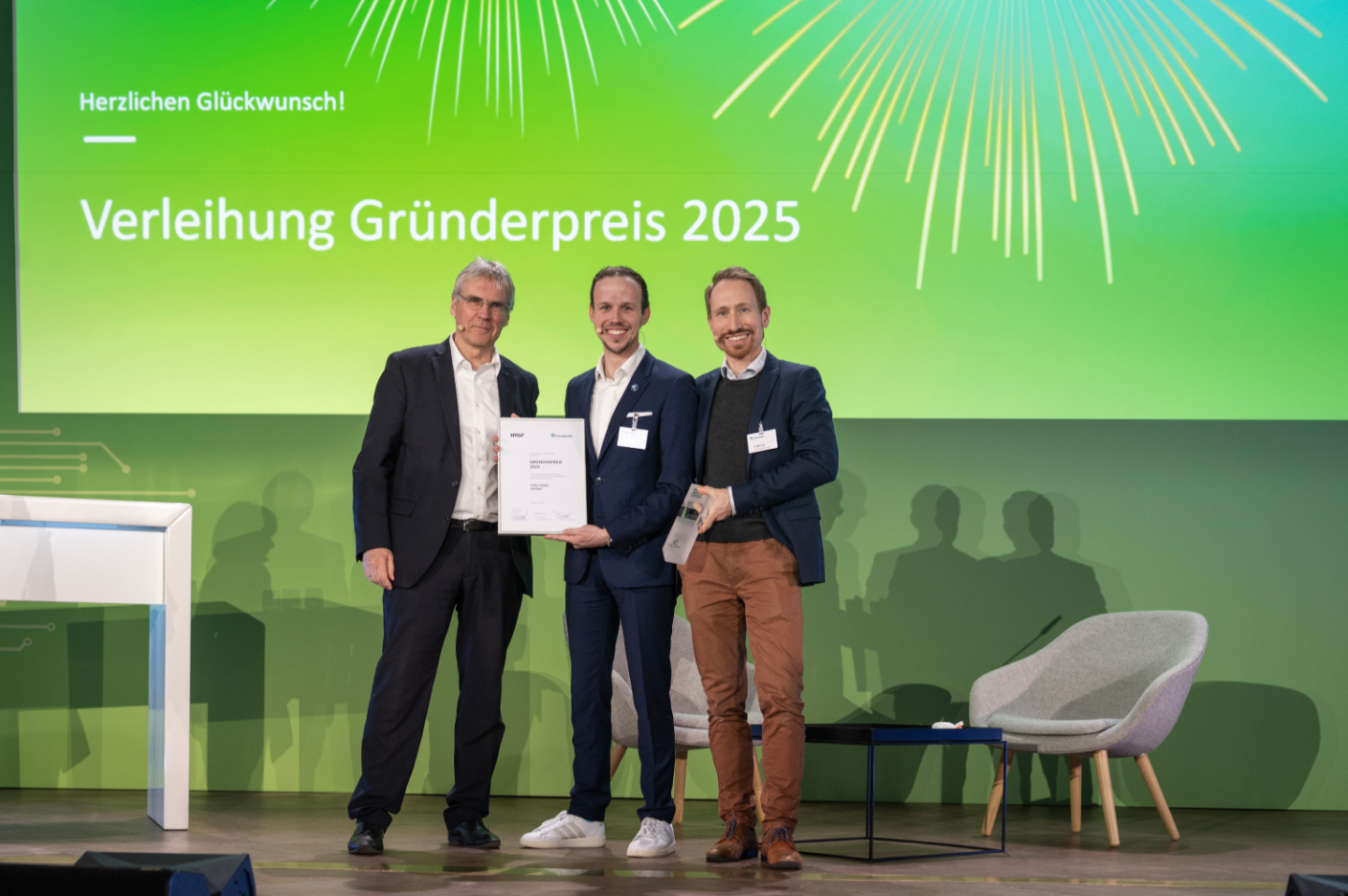 Dr. Nils Lang, Senior Investment Manager des High-Tech Gründerfonds, würdigte bei der Preisübergabe die besonderen Rahmenbedingungen: »Als Innovationstreiber eröffnet Fraunhofer exzellenten Technologien den Weg in den Markt. Gründerinnen und Gründer aus der Fraunhofer-Gesellschaft profitieren dabei von starken Start- und Finanzierungsvoraussetzungen, zu denen der HTGF mit Kapital, Erfahrung und Netzwerk gezielt beiträgt.«