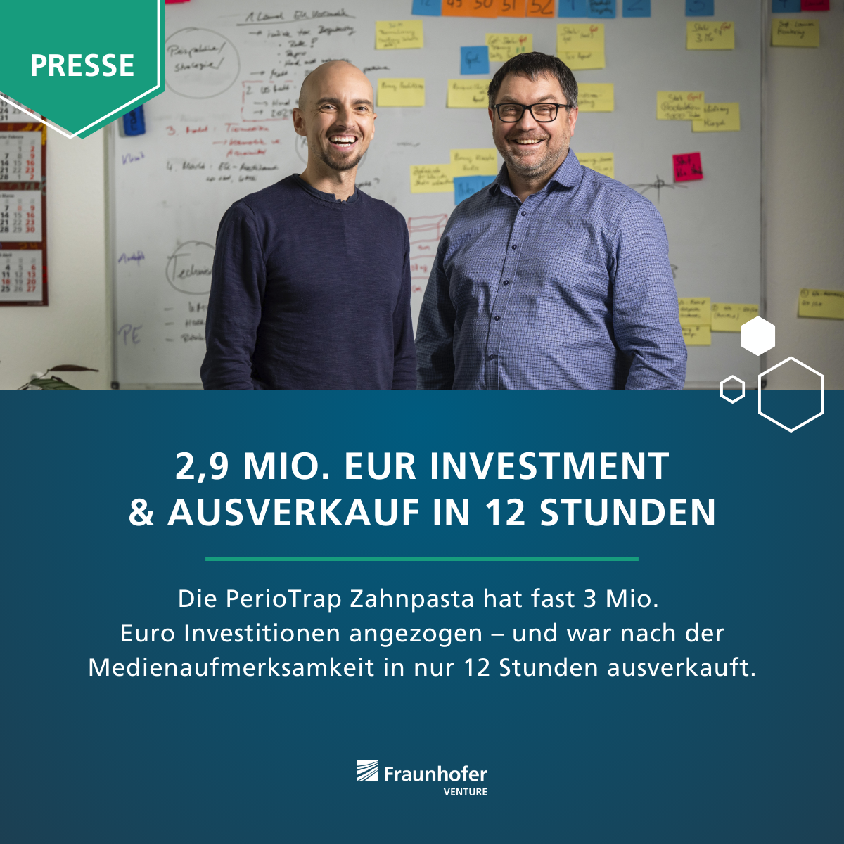 Auslöser für die hohe Nachfrage war unter anderem ein starkes Medienecho. Eine Pressemitteilung der Fraunhofer-Gesellschaft zur Technologie von PerioTrap erzielte bundesweit und international mediale Aufmerksamkeit. Infolgedessen war die Mikrobiom-Zahnpasta des Unternehmens innerhalb von 12 Stunden ausverkauft.
